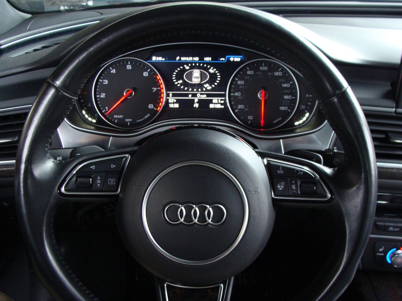 2-Owner, No Accidents!!!, Brilliant Black 2017 Audi A6 3.0T Premium Plus quattro quattro 8-Speed Automatic with Tiptronic 3.0L V6 Turbocharged DOHC 24V LEV3-ULEV125 333hp LOCAL TRADE, NON SMOKER, CLEAN CARFAX, quattro, Black Leather, 14 Speakers, 19" Sport Package, 4-Wheel Disc Brakes, ABS brakes, Achat Gray Fine Grain Birch Natural Wood Inlays, Air Conditioning, Alloy wheels, Aluminum Door Sills, AM/FM radio: SiriusXM, Anti-whiplash front head restraints, Audi Connect w/Online Services, Audi Guard All-Weather Floor Mats (Set of 4), Auto tilt-away steering wheel, Auto-dimming door mirrors, Auto-dimming Rear-View mirror, Automatic temperature control, Black Cloth Headliner, Bose Surround Sound System w/Subwoofer, Brake assist, Bumpers: body-color, CD player, Cold Weather Package, Compass, Delay-off headlights, Driver door bin, Driver vanity mirror, Dual front impact airbags, Dual front side impact airbags, DVD-Audio, Electronic Stability Control, Exterior Parking Camera Rear, Four wheel independent suspension, Front anti-roll bar, Front Bucket Seats, Front Center Armrest w/Storage, Front dual zone A/C, Front fog lights, Front reading lights, Garage door transmitter, Genuine wood console insert, Genuine wood dashboard insert, Genuine wood door panel insert, Heads-Up Display, Heated door mirrors, Heated Front Comfort Seats, Heated front seats, Heated Rear Seats, Heated Round Multifunction Sport Steering Wheel, High intensity discharge headlights: Xenon plus, HVAC memory, Illuminated entry, Knee airbag, Leather Seating Surfaces, Leather Shift Knob, Leather steering wheel, Low tire pressure warning, Memory seat, Navigation System, Occupant sensing airbag, Outside temperature display, Overhead airbag, Panic alarm, Passenger door bin, Passenger vanity mirror, Power door mirrors, Power driver seat, Power moonroof, Power passenger seat, Power Rear & Manual Rear Side Window Sunshades, Power steering, Power windows, Radio data system, Radio: Audi MMI Navigation Plus w/MMI Touch, Rain sensing wipers, Rear air conditioning, Rear anti-roll bar, Rear dual zone A/C, Rear fog lights, Rear reading lights, Rear seat center armrest, Rear window defroster, Remote keyless entry, Security system, Speed control, Speed-sensing steering, Speed-Sensitive Wipers, Split folding rear seat, Sport Suspension, Steering wheel memory, Steering wheel mounted audio controls, Tachometer, Telescoping steering wheel, Tilt steering wheel, Traction control, Trip computer, Turn signal indicator mirrors, USB Audi Music Interface, USB Cables, Variably intermittent wipers, Wheels: 18" 10-V-Spoke Design, Wheels: 19" Audi Sport 10-Spoke Design.