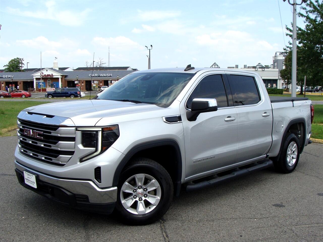 1-Owner, No Accident!!!, Quicksilver Metallic 2022 GMC Sierra 1500 SLE 4WD 8-Speed Automatic 2.7L Turbo 8-Speed Automatic, 4WD, Black Cloth, 10-Way Power Driver Seat Adjuster w/Lumbar, 120-Volt Bed Mounted Power Outlet, 120-Volt Instrument Panel Power Outlet, 2 Charge/Data USB Ports, 2 Type-C Charge-Only Rear USB Ports, 220 Amp Alternator, 3.42 Rear Axle Ratio w/Max Trailering Pkg, 4-Way Manual Passenger Seat Adjuster, 4-Wheel Disc Brakes, 6 Speakers, 6-Speaker Audio System Feature, ABS brakes, Air Conditioning, Alloy wheels, AM/FM radio: SiriusXM with 360L, Apple CarPlay/Android Auto, Auto High-beam Headlights, Auto-Locking Rear Differential, Automatic Emergency Braking, Automatic temperature control, Brake assist, Buckle to Drive, Bumpers: chrome, Chrome Header w/Medium Silver Grille Insert Bars, Cloth Seat Trim, Color-Keyed Carpeting Floor Covering, Compass, Deep-Tinted Glass, Delay-off headlights, Driver door bin, Driver vanity mirror, Dual front impact airbags, Dual front side impact airbags, Dual-Zone Automatic Climate Control, Electric Rear-Window Defogger, Electrical Steering Column Lock, Electronic Stability Control, Emergency communication system: OnStar and GMC Connected Services capable, Exterior Parking Camera Rear, Following Distance Indicator, Forward Collision Alert, Front 40/20/40 Split-Bench Seat, Front anti-roll bar, Front Center Armrest w/Storage, Front dual zone A/C, Front Frame-Mounted Black Recovery Hooks, Front License Plate Kit, Front Pedestrian Braking, Front reading lights, Front Rubberized-Vinyl Floor Mats, Front wheel independent suspension, Fully automatic headlights, GMC Connected Access Capable, HD Rear Vision Camera, Heated door mirrors, Heated Driver & Front Outboard Passenger Seating, Heated front seats, Heated Steering Wheel, Heated steering wheel, Hitch Guidance, Illuminated entry, IntelliBeam Automatic High Beam On/Off, Keyless Open & Start, Lane Keep Assist w/Lane Departure Warning, LED Cargo Area Lighting, Low tire pressure warning, Manual Tilt-Wheel & Telescoping Steering Column, Navigation System, Not Equipped w/Steering Column Lock, Occupant sensing airbag, OnStar & GMC Connected Services Capable, Outside temperature display, Overhead airbag, Overhead console, Panic alarm, Passenger door bin, Passenger vanity mirror, Power Door Locks, Power door mirrors, Power driver seat, Power Front Windows w/Driver Express Up/Down, Power Front Windows w/Passenger Express Down, Power Rear Windows w/Express Down, Power steering, Power windows, Preferred Equipment Group 3SA, Premium audio system: GMC Infotainment System, Push Button Start, Radio data system, Radio: Premium GMC Infotainment Audio System, Rear reading lights, Rear Rubberized-Vinyl Floor Mats, Rear step bumper, Rear window defroster, Remote keyless entry, Remote Start Package, Remote Vehicle Starter System, Security system, SiriusXM w/360L, SLE Convenience Package, SLE Value Package, Speed control, Speed-sensing steering, Split folding rear seat, Spray-On Pickup Bed Liner w/GMC Logo, Standard Suspension Package, Steering Wheel Audio Controls, Steering wheel mounted audio controls, Tachometer, Telescoping steering wheel, Theft Deterrent System (Unauthorized Entry), Tilt steering wheel, Traction control, Trailering Package, Trip computer, Variably intermittent wipers, Voltmeter, Wheels: 17" x 8" Bright Silver Painted Aluminum, Wi-Fi Hotspot Capable, Wireless Phone Projection.